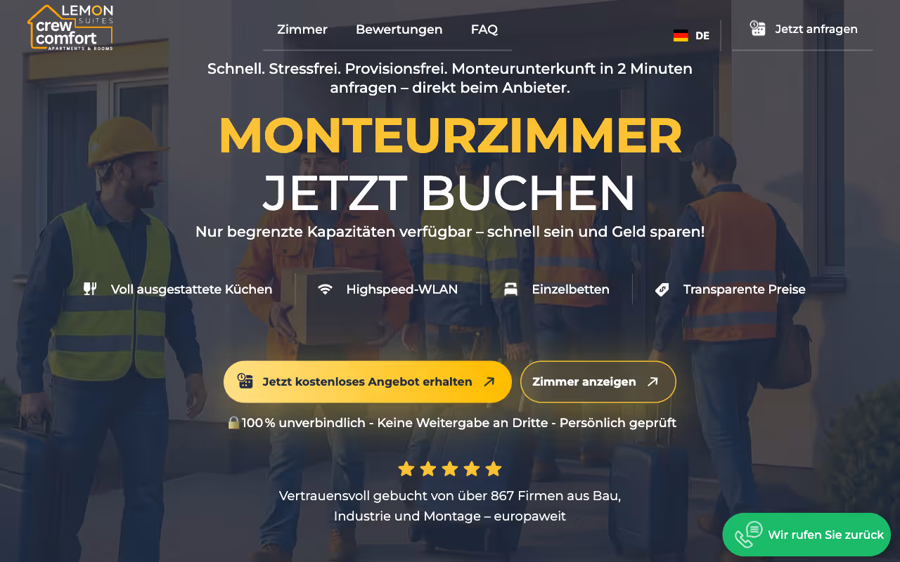 Building a seamless booking experience with advanced filtering and CMS. Lemon Suites provides long-stay accommodation for flight and shipping crews. I redesigned their site to support multiple languages (using the Weglot extension) and built a CMS-driven rooms catalogue with advanced filtering via Finsweet attributes. The result is a dynamic platform that makes finding and booking the right room effortless.