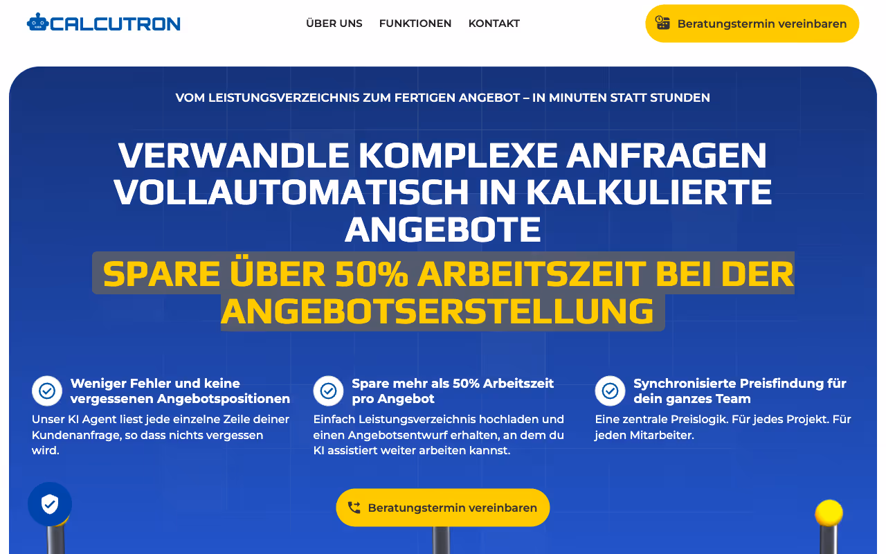 Bridging complex functionality and a frictionless user experience for a pioneering AI platform. Calcutron wanted to showcase its AI-powered SaaS solution with an engaging, high-tech feel. I designed and built a Webflow landing page featuring 3D Spline graphics, GSAP-powered animations and a dynamic pricing engine that guides users through plan options. The page delivers both visual impact and intuitive pricing logic.