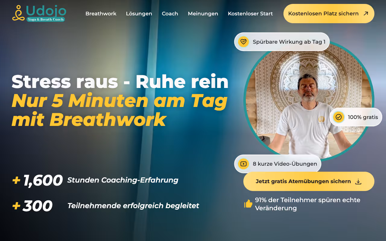 A clean, user-centric website for a breathwork practitioner. Udo Breathwork wanted to attract new clients and reflect the tranquillity of their practice. I redesigned their landing page using soothing colours, clear typography and purposeful white space. The live site now looks professional and invites prospective clients to book sessions.