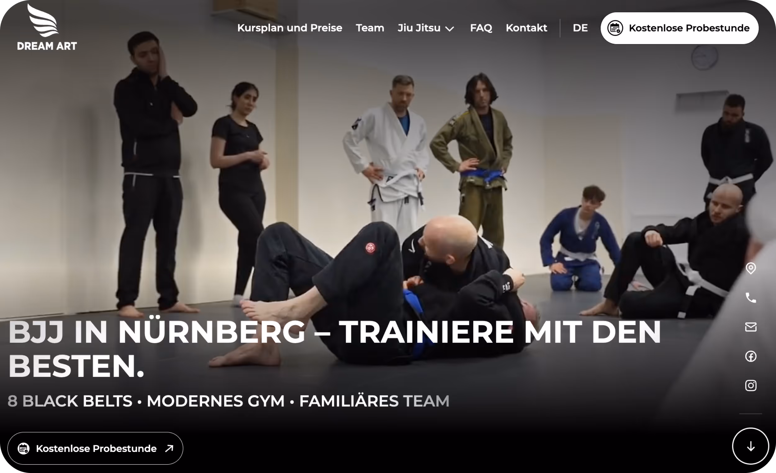 A targeted page that speaks directly to adults seeking discipline, fitness and community. Designed for paid campaigns, this landing page highlights the benefits of Brazilian Jiu-Jitsu for adults and makes it easy to sign up for a trial class. Crisp design and strong calls-to-action help convert traffic into members.