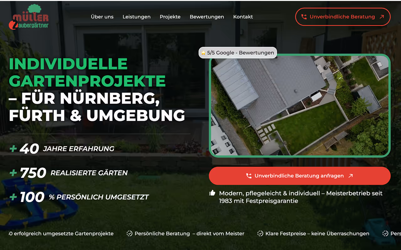 A data-driven design that boosted revenue and lead generation. For Zaubergärtner, a local gardener, I designed a clear, compelling landing page using AI-generated imagery and custom animations. The page’s concise storytelling and optimised lead form contributed to a 58% increase in revenue and generated over €30k within 60 days.