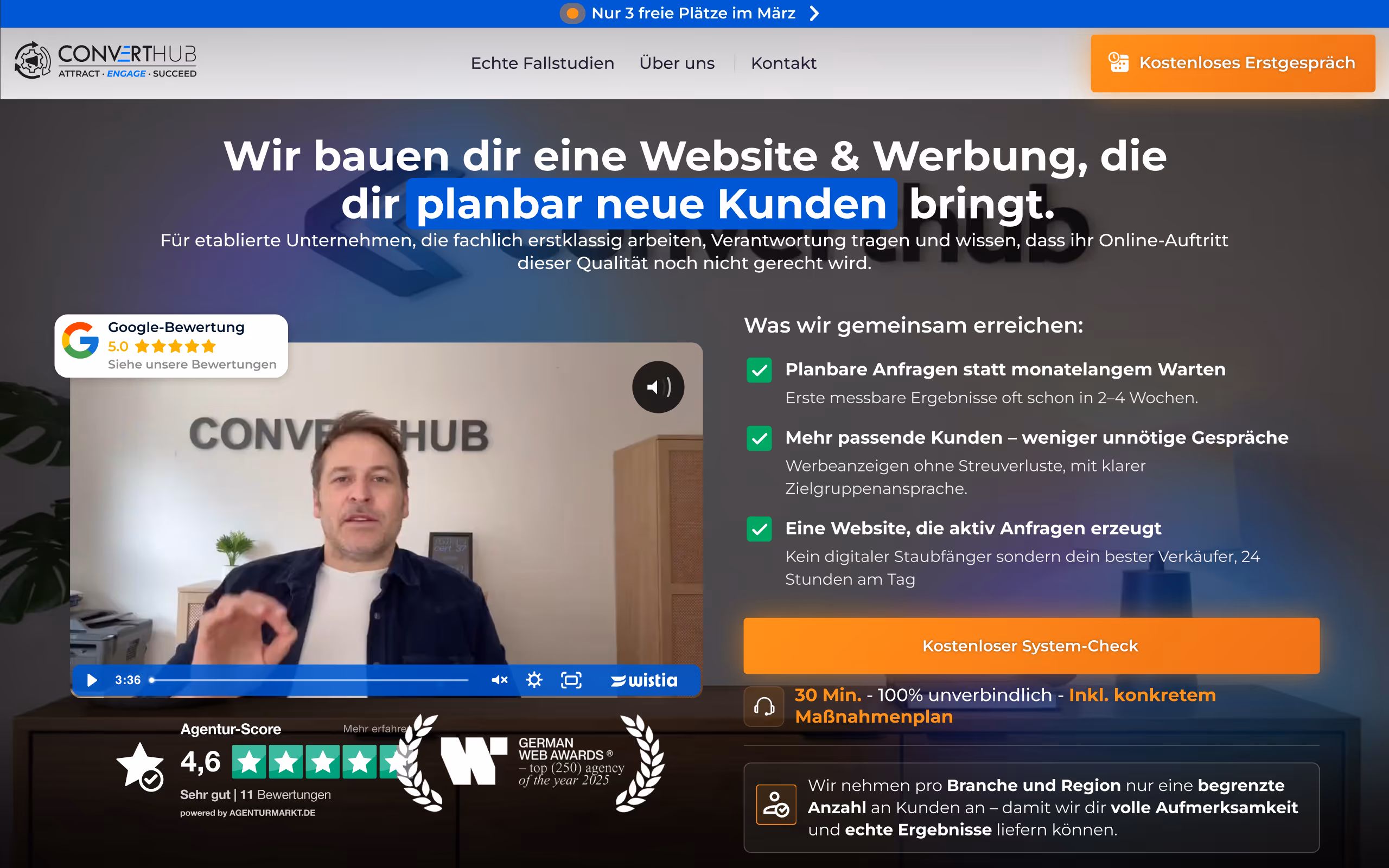 Agency landing page designed to drive B2B lead generation. I created a promotional website that generates qualified leads. I wrote the text using AI prompts and created the design and animations in Figma and Webflow.ConvertHub is a landing page for a paid traffic agency that I built in Webflow. I handled the copywriting myself (using AI prompts), while the client managed the ad setup. The main goal was to generate high-quality leads for B2B services; most of the clients (Calcutron, Lemon Suites, Valu-X, Zaubergärtner, etc.) came through this site. This site became the foundation for scaling the agency and converted advertising traffic into steady orders.Translated with DeepL.com (free version)